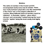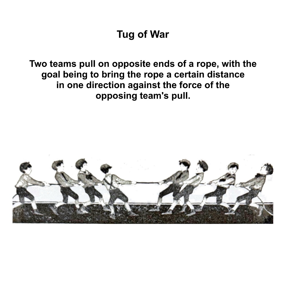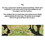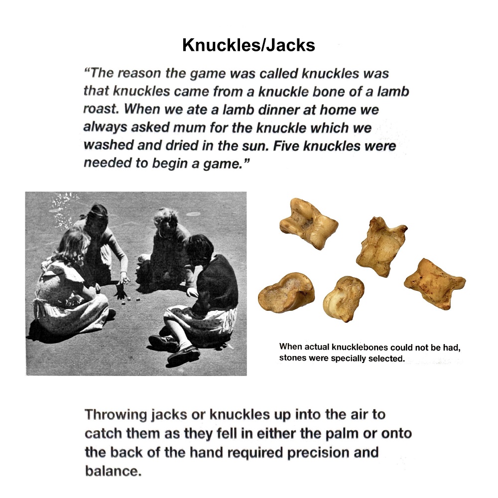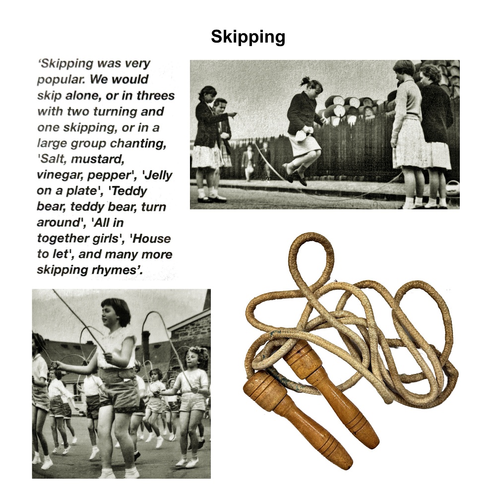 Ball Games Hopscotch Marbles French Cricket Hide and Seek Skipping Elastics Knuckles/Jacks Pussy in the Corner Slingshot Vigoro Tug of War Maypole Dancing Egg and Spoon Race Sack Race Three-legged Race Tops Fly Bulldogs Yo-Yos Keywords New images Miscellaneous Memories